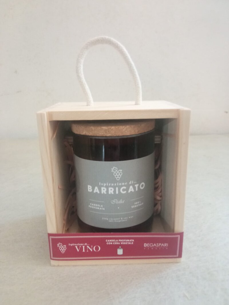 Confezione composta da 1 candela da 230 gr, tappo in sughero e scatola in legno.